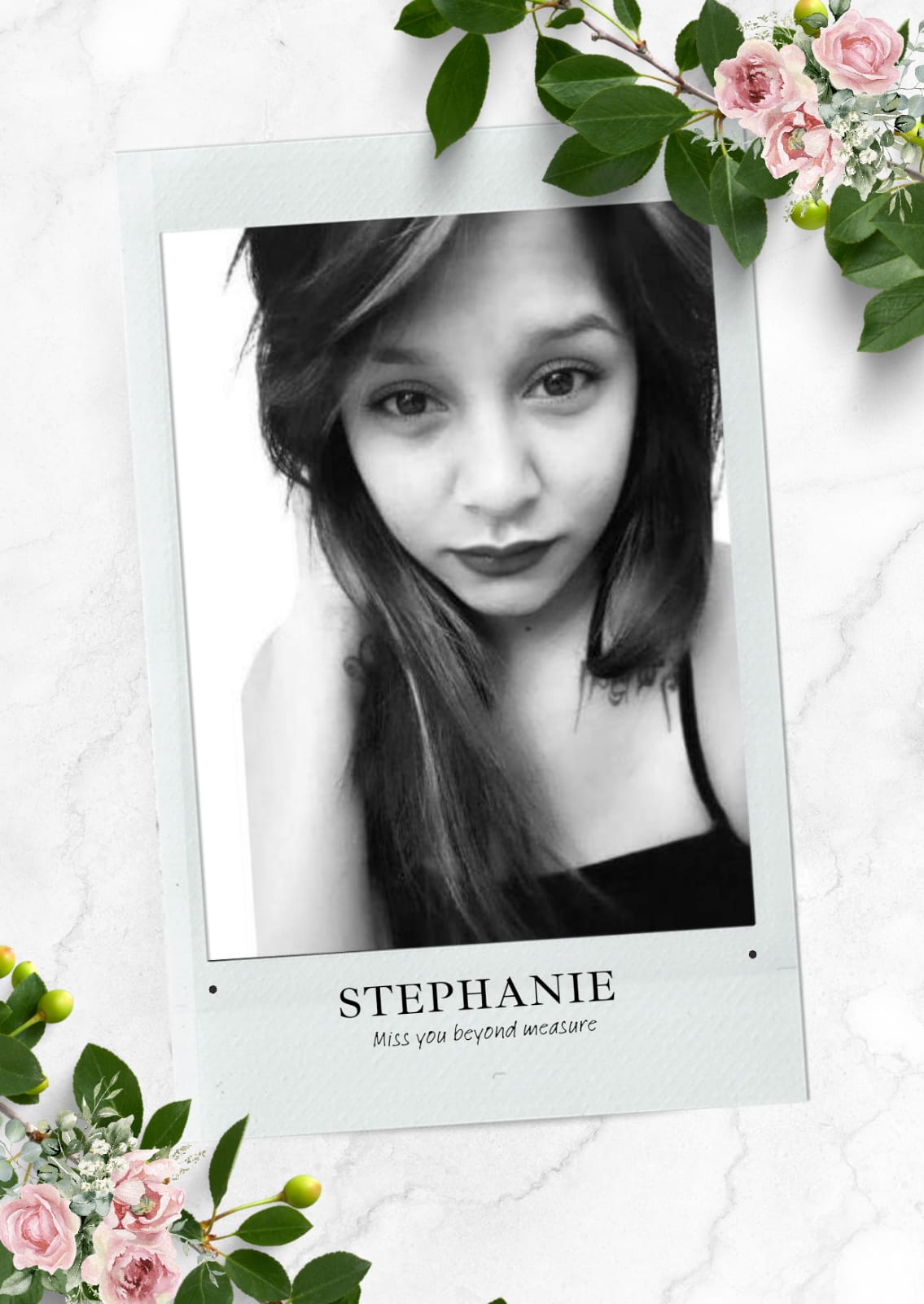 Lets keep her memory Alive..Scroll Down Stephanie Robin NaryanGone too soon, but forever in our hearts… Psalms 91:4“He will cover you with his feathers, and under his wings you will find refuge; his faithfulness will be your shield and rampart.” Happy Heavenly Birthday Steph… As we look up to the sky, we see your light shining down upon us, reminding us of your eternal presence. Happy birthday in heaven! View videos Tattoo’s